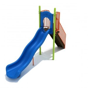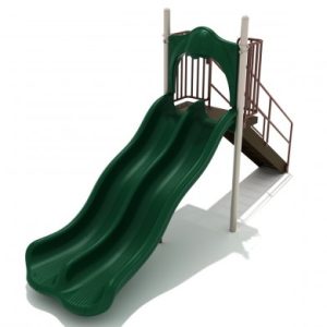 The 8 Foot Triple Sectional Split Slide is perfect for when you’re wanting to incorporate multiple slides into your recreation plan but are lacking the space necessary for three separate independent units. The trio of slides atop the eight-foot-high decking is accessed via the same guardrail-protected stairway. Kiddos will be excited to race alongside their friends as groups simultaneously zip down the center straight slide and either (or both!) of the two turn slides next to it. The 3.5-inch posts of the tough steel framework help the slide stand up to years of daily play and the bright colors of the unit’s chutes, paneling, and rails can be customized if desired. Please speak with a customer service representative to learn of available colors and current lead times.