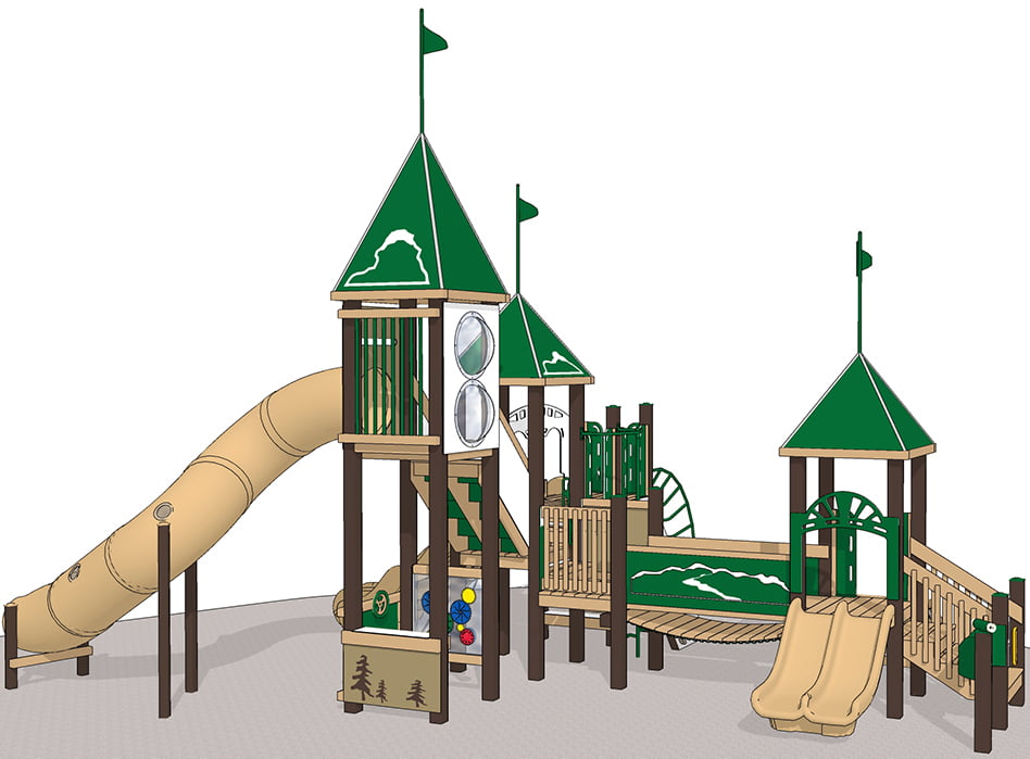 Let your kids take a trip to the Alps with this playground playset! Features include outdoor laminated photos of the majestic Alps mountain range, 9′ high Reversing Spiral Slide; Rock Climbers, Rope Net Climbers; 6′ Alpine Thunder slide; Spiral Loop Climber, 3 Castle Roofs with flags; Deep Rung Arch Climber; Clatter bridge.