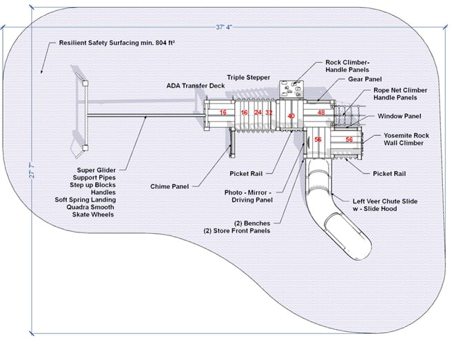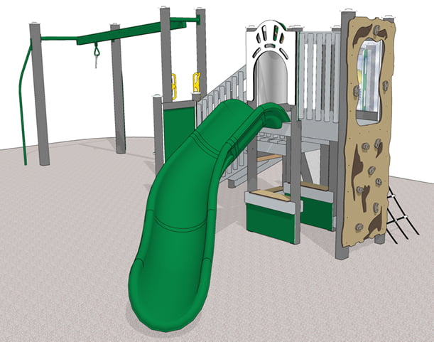 Specially designed for adventurous 5- to 12-year-olds. Our BearBack playset entertains with lots of physical challenges. The Super Glider and climbers provide upper body strengthening exercises. Rock and rope climbers develop balance, agility, and strength.