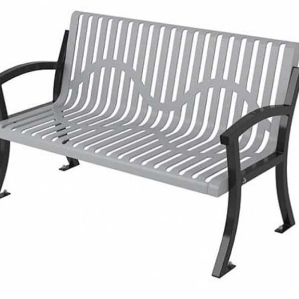 Standard Bench With Back Comes in 12 styles: regal, perforated, innovated, infinity, infinity innovated, rolled, innovated rolled, classic rolled, UltraLeisure, UltraLeisure Perforated, L series, Plasti-Plank Lengths: 4’, 6’, 8’, 10’, 15’ Color and Coating Options Metal Design Options