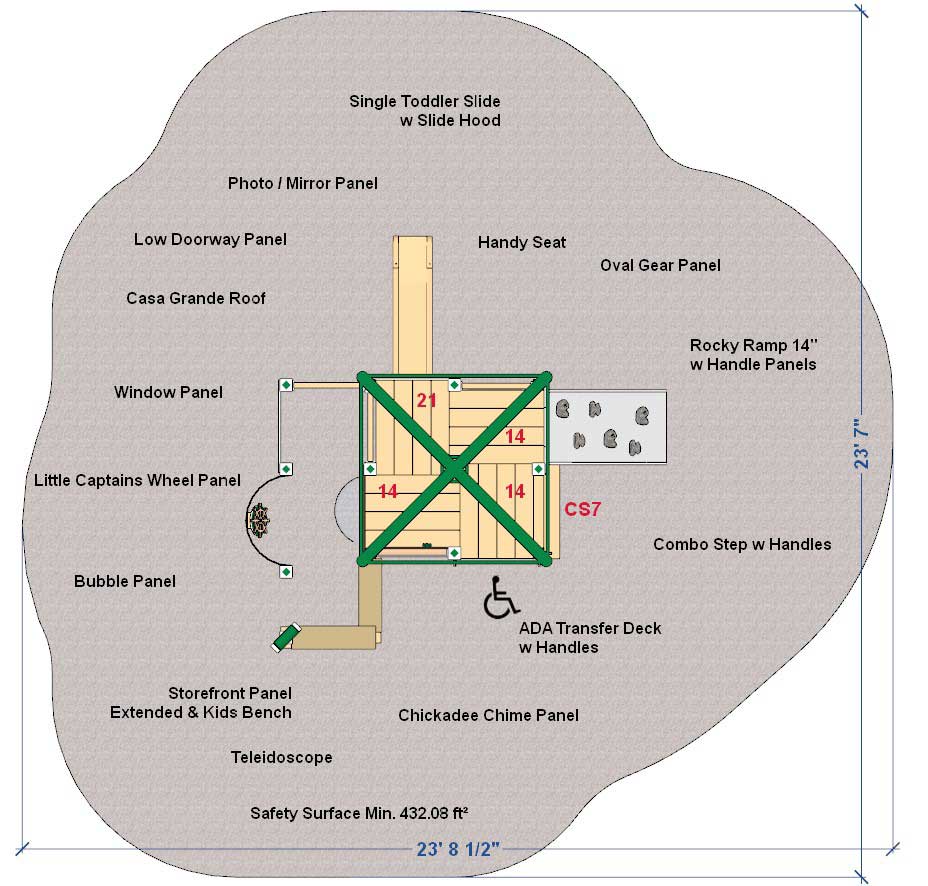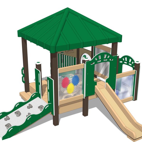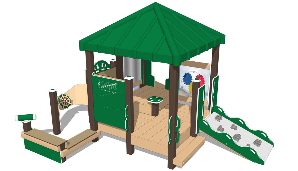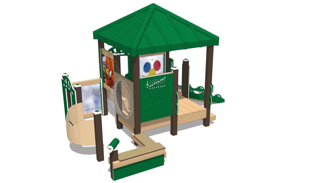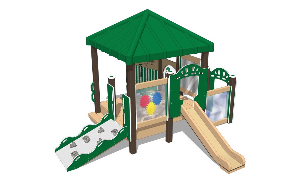 Your tots will love wiggling up the wavy-sided Rocky Ramp where they’ll be met with sensory stimulation on every side! Infants as young as 18 months can be mesmerized by the Oval Gear Panel as they use their gross motor skills to spin colorful gears. Older kids up to age 3 will enjoy imaginative play pretending to be a ship captain at the Little Captain’s Wheel in hopes of spotting a colorful Clownfish! Of course, we wouldn’t want your little ones to play in silence, so we added a Chicakdee Chime Panel for extra stimulation and musical learning. The Clownfish is ADA-accessible so children of all abilities can join in the fun. It’s sure to be a swimmingly good time!
