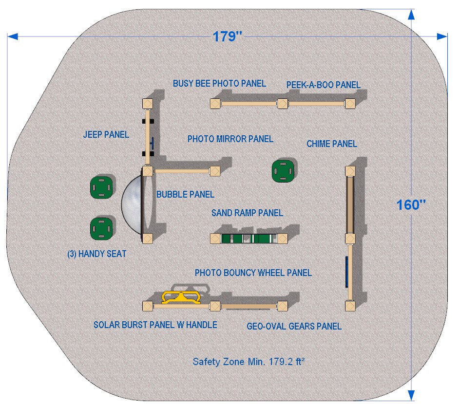 Next to the chimes is our newest activity panel: the Bouncy Ball Spinner! Tots learn about cause and effect as they watch the colorful spheres dance around the wheel.