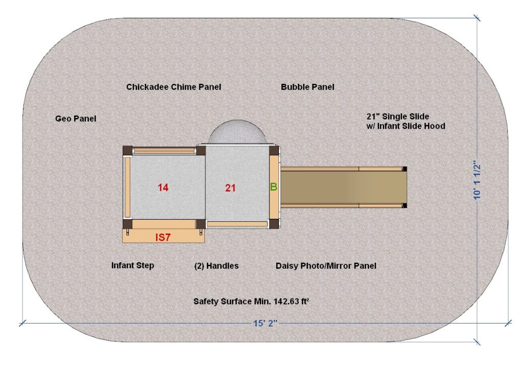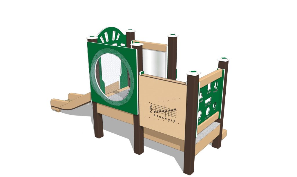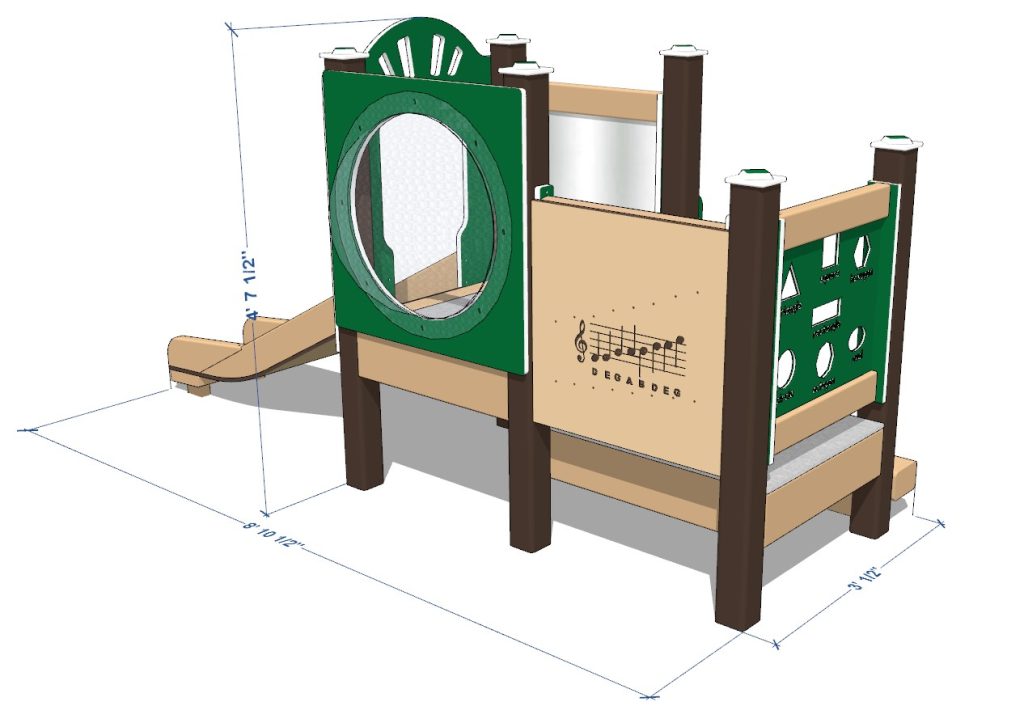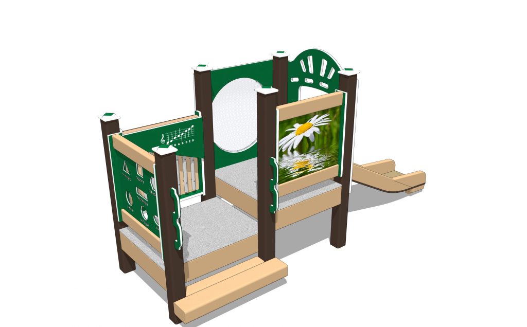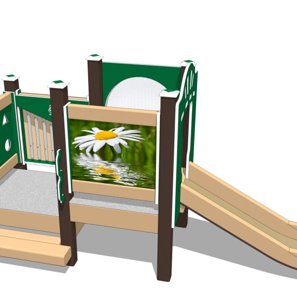 Daisy-themed playset includes an Infant Single Slide. Babies can slide on our own proprietary design! An infant-appropriate Chickadee Chime Panel provides musical fun. This playset is specifically sized for children aged 6 months to 23 months. We’ve packed lots of activities in a compact, economical design ready for your outdoor playground.