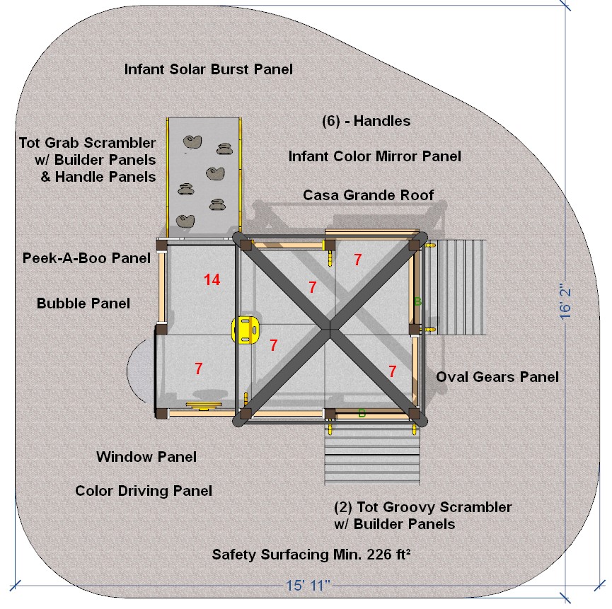 Safety Zone: 16′ x 17′
