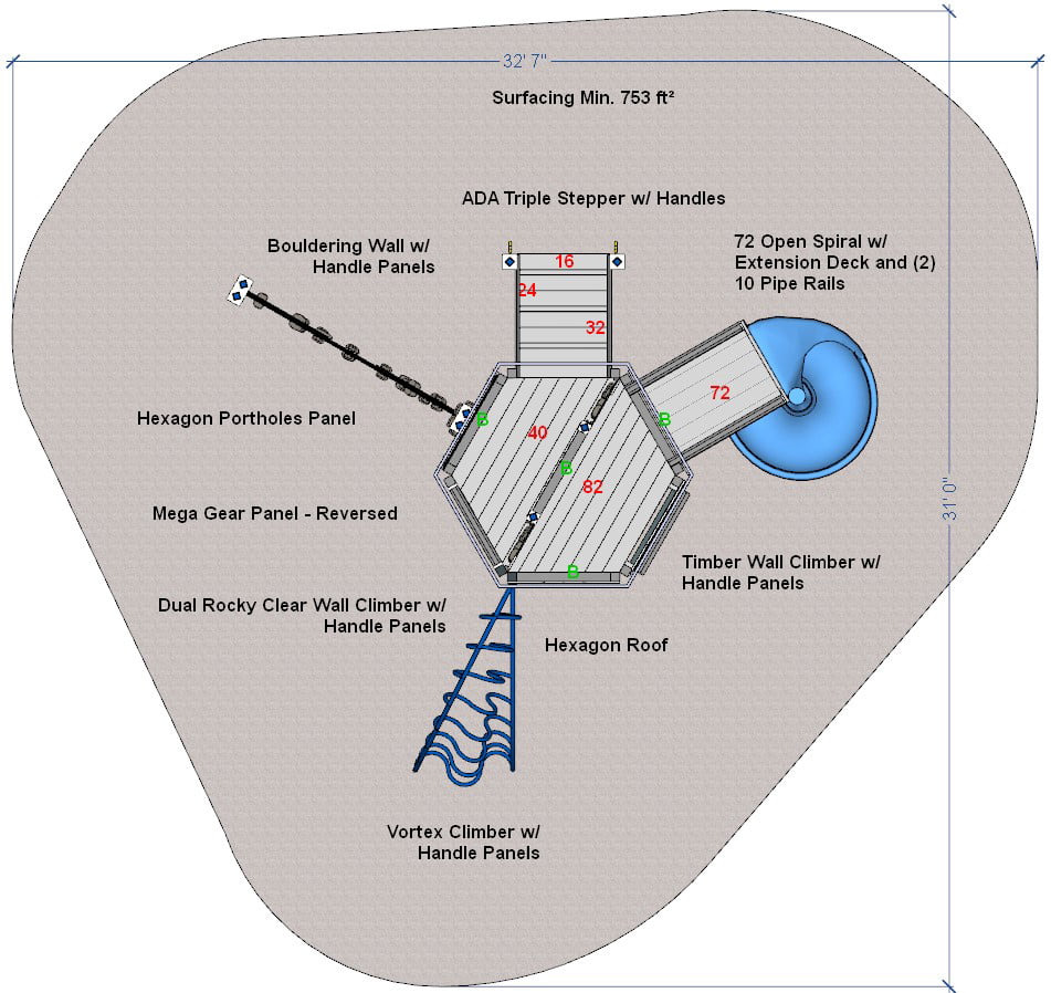 Safety Zone: 33′ x 31′