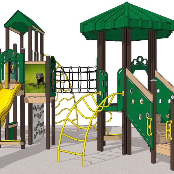 Challenging climbing features keep their bodies active, building agility. Difficulty levels range from the solid, confidence-boosting Timber Wall to the towering, twin Vortex Climbers.