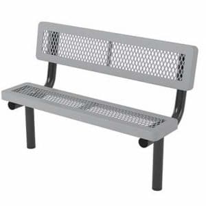 Standard Bench With Back Comes in 12 styles: regal, perforated, innovated, infinity, infinity innovated, rolled, innovated rolled, classic rolled, UltraLeisure, UltraLeisure Perforated, L series, Plasti-Plank Lengths: 4’, 6’, 8’, 10’, 15’ Color and Coating Options Metal Design Options