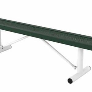 Standard Bench Without Back Comes in 13 styles: regal, perforated, innovated, infinity, infinity innovated, rolled, innovated rolled, classic rolled, UltraLeisure, UltraLeisure Perforated, L series, Plasti-Plank, Slatted Lengths: 4’, 6’, 8’, 10’, 15’ Color and Coating Options Metal Design Options