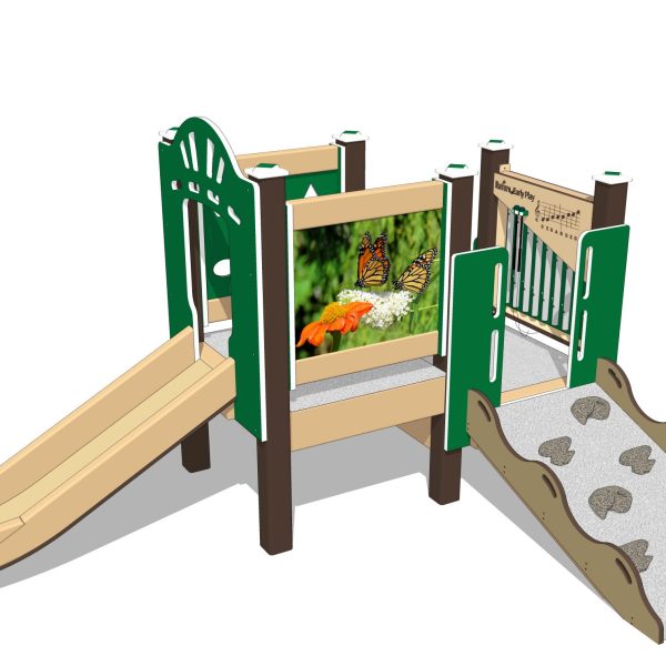 Young children need play equipment to match their proportions, and this beautiful Monarch outdoor playset is perfectly sized! Tots can scramble up the gentle slope of the Rocky Ramp Climber to reach the low decks.