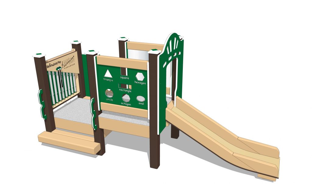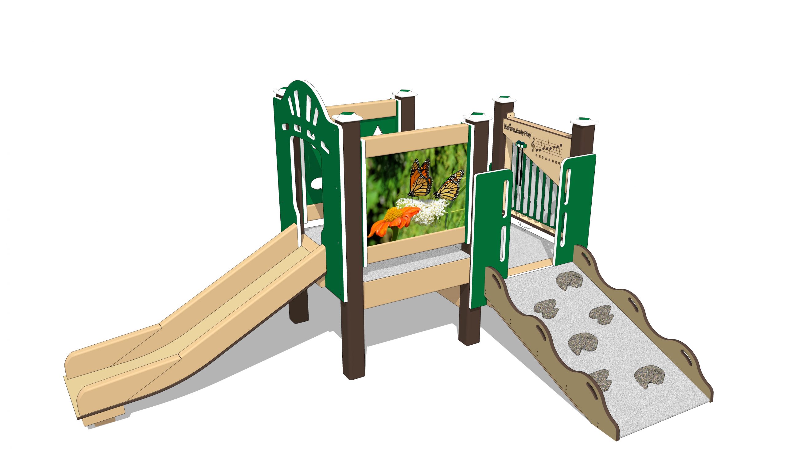 Waiting for them at the top is an infant-appropriate Chickadee Chime Panel. The carefully tuned chimes will delight small players and their guardians alike.