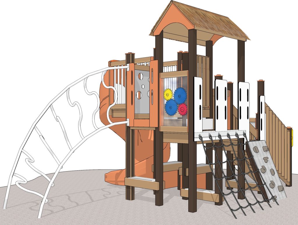 Kids can imagine they’re scaling the rocky cliffs shown in the photo when they scramble up the multiple climbers. Or maybe the crashing waves will inspire them to compose a tune on the Chime Panel. Our interactive gear panel is sure to please any future engineer.