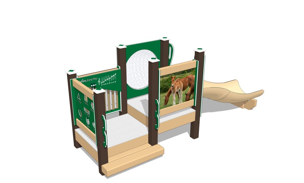 Infants can play with the ponies on the beautiful outdoor playset sized for children 6 months to 23 months. There are lots of activities built into this compact, economical design.