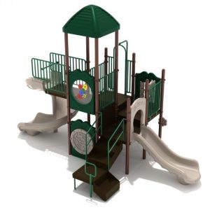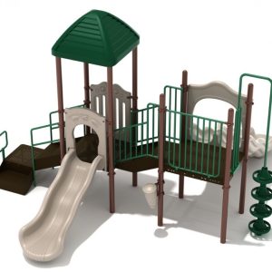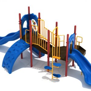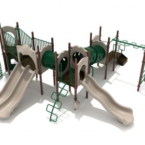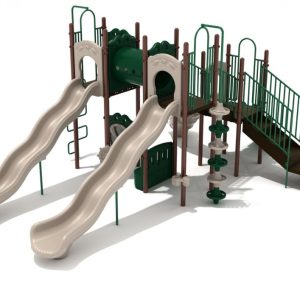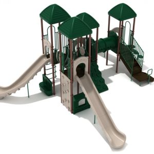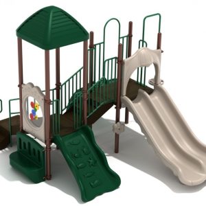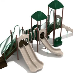Description Age Range: 5-12 years Child Capacity: 27-31 Fall Height: 7' Safety Zone: 35' 2" x 31' PLAYSET SHIPS IN 2-3 WEEKS (avg.) What’s better than one awesome slide? Three awesome slides! With the Montauk Downs playset, children will have a blast racing each other...
