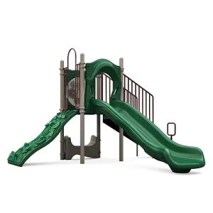 Description Age Range: 2-5 years Child Capacity: 24-28 Fall Height: 4' Safety Zone: 27' x 25' 7" PLAYSET SHIPS IN 2-3 WEEKS (avg.) Kids will have a blast scaling to the top and racing down the double slide with the Los Arboles play structure. Ideal...