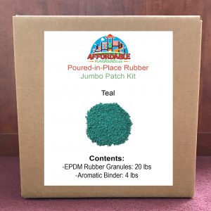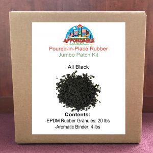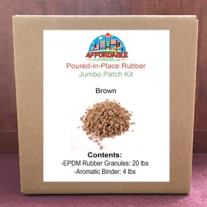 Jumbo Size: Covers approximately 10 sqft at a depth of 1/2" (20 lbs of EPDM rubber granules & 4 lbs of Aromatic binder) This playground rubber repair kit is an easy DIY solution that quickly solves a small problem before it turns into a big one. The patch kit...