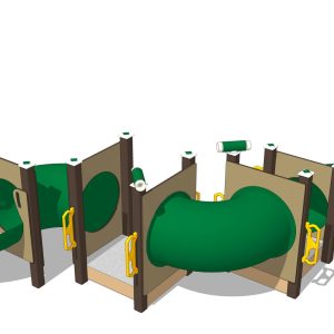 The variety of playground playhouses available from Nature of Early Play includes this amazing Vine House. We have redesigned it for more standing/headroom and more structural stability. Added graphics mean more visual appeal! Engraved vines on the corner arches and mushrooms on the ModBox planters also add a tactile...