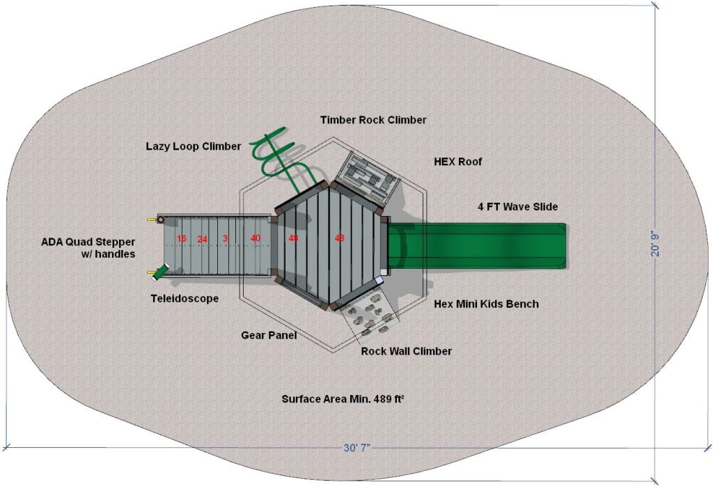 Description Age Range: 5-12 years Child Capacity: 79-99 Safety Zone: 57′ x 59′ The huge Kilauea Mega Playground play system keeps kids as active as the volcano for which it is named. Children can spend hours climbing, playing, imagining, and more on this playground. They’ll...