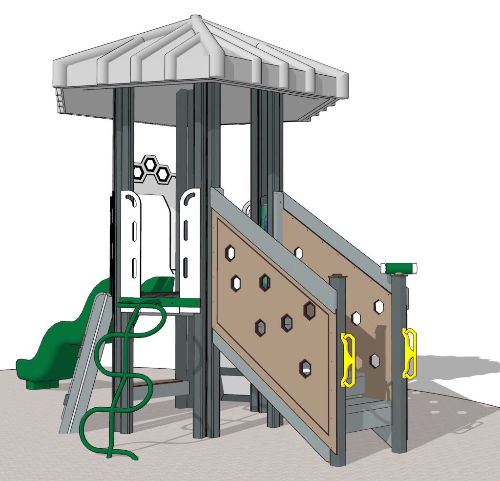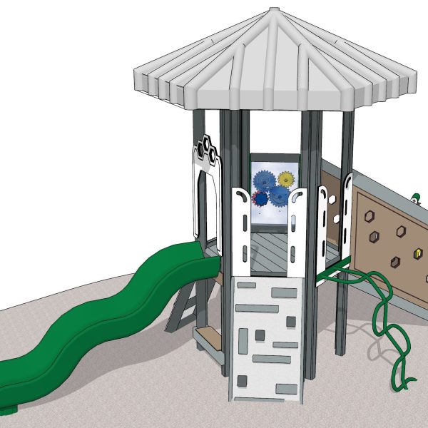 The River Otter mini playground is one of our American animal series, which features Hexagon playsets. This playset is the perfect choice for tight budgets and smaller play areas. The compact, yet vertical design boasts six exciting play features for maximum fun in limited spaces.