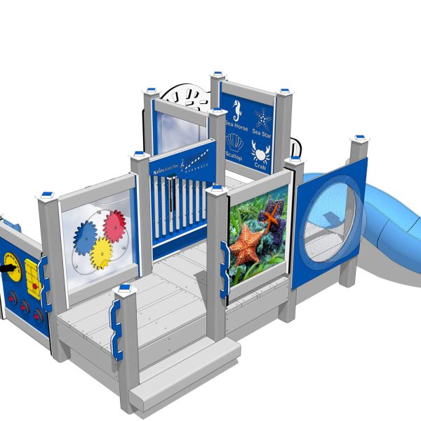 Your tots can take a deep dive into STEM when they survey their surroundings with the Teleidoscope. The vibrantly colored photo panels bring sea creatures to life, sparking curiosity about science and the earth in your little ones! Children will be led to engage in imaginative social play as they use the Little Captain’s Wheel and Bubble Panel to envision the wonders of their underwater excursion. Bring the Sea Critters playset to your childcare facility and watch your toddlers plunge into playful learning!