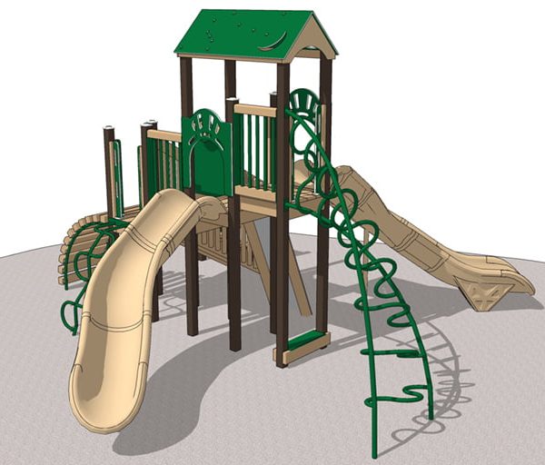 Four different climbers encourage the development of strength and ability. Both the Arch and Lazy Loop Climbers attach to the lower 4-foot deck for the beginner. The higher Rock Wall Climber features our new rubberized HDPE sheet and “real feel” rocks to build confidence. Our Vortex Climber will challenge the bolder child with its 6 ft height.