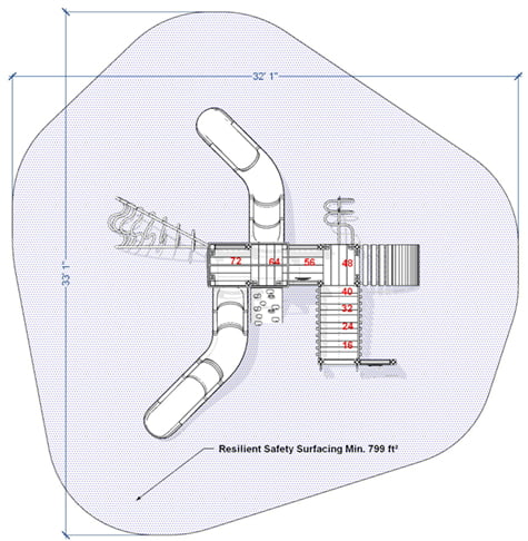 Safety Zone: 34′ x 33′
