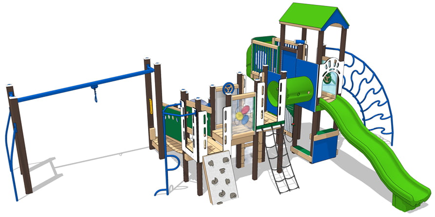 Kids will play for hours on our Stoneybrook mini playground. Shown here in the crisp Spring color scheme, the Stoneybrook playset offers a welcome way to shake off winter’s doldrums. Kids love to play outside for sure. Numerous features on this playground encourage kids to be up and moving.
