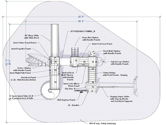 Safety Zone: 43′ x 33′