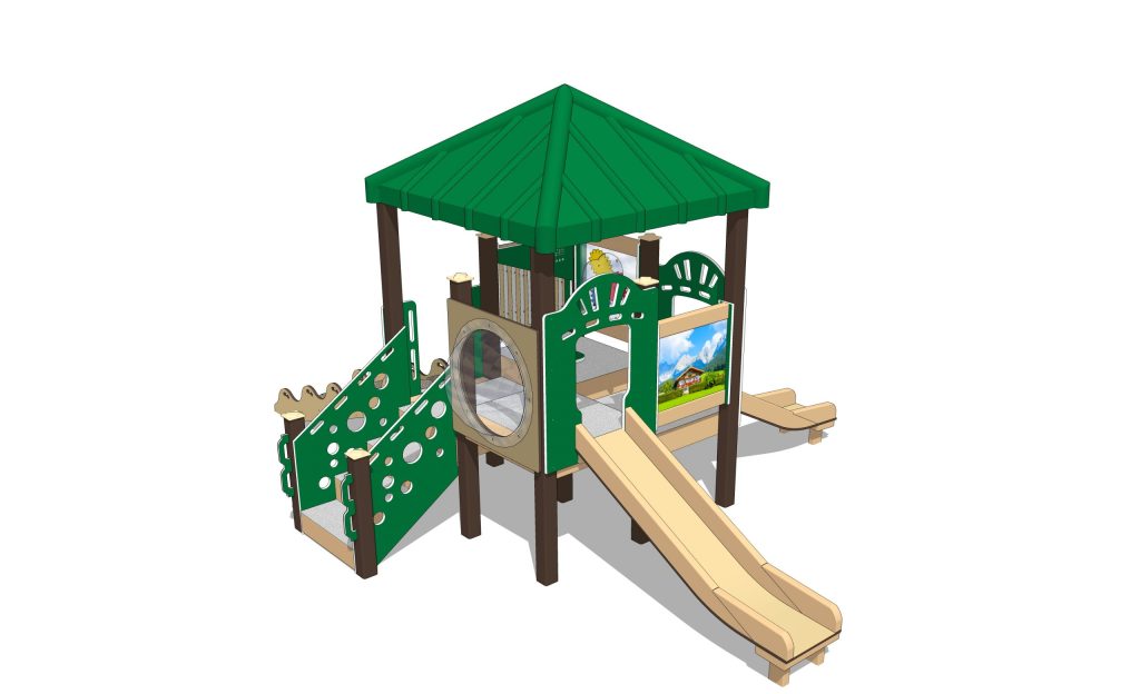 Whether you install this playset at a daycare facility, community park, or school the Swiss Chalet makes an exciting addition to your play area and it’s sized just right for little kids.