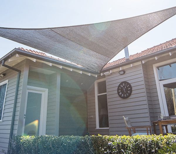 Each right angle sail shade comes with three posts either 8′, 10′ or 12′ high. This allows the structure to cover anything from a parking spot to a backyard patio.