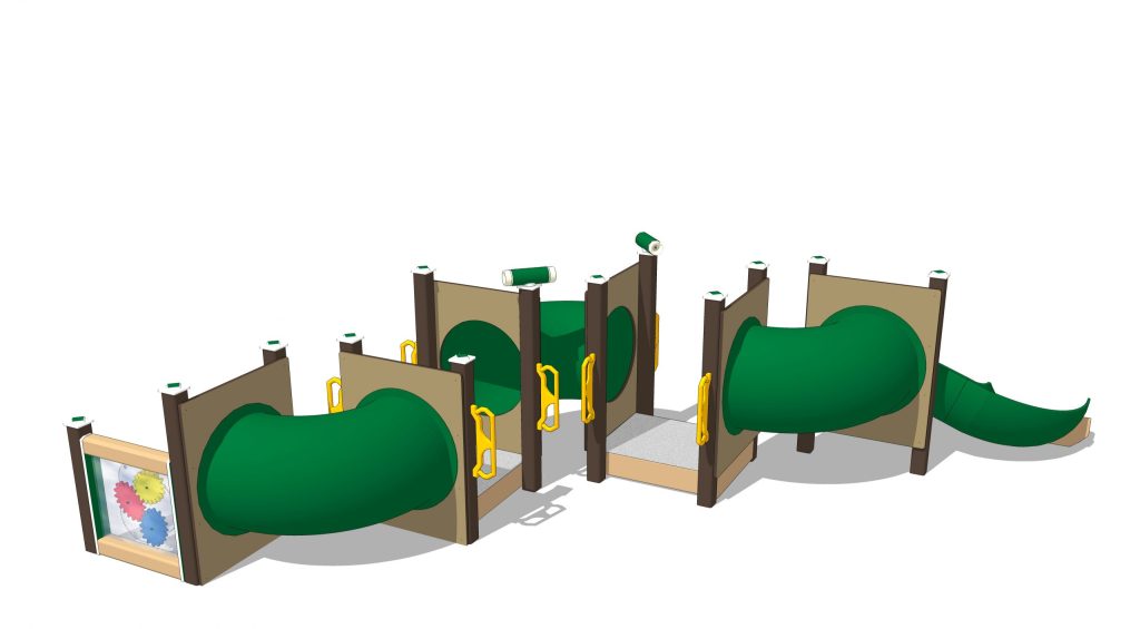 Redesigned for 2020! Our Tunnel Maze provides the perfect space for newly mobile infants to explore. Tots scramble up the ground-level decks to access the curved connecting tunnels. Sturdy handles are narrow enough for little hands to grab as they climb.